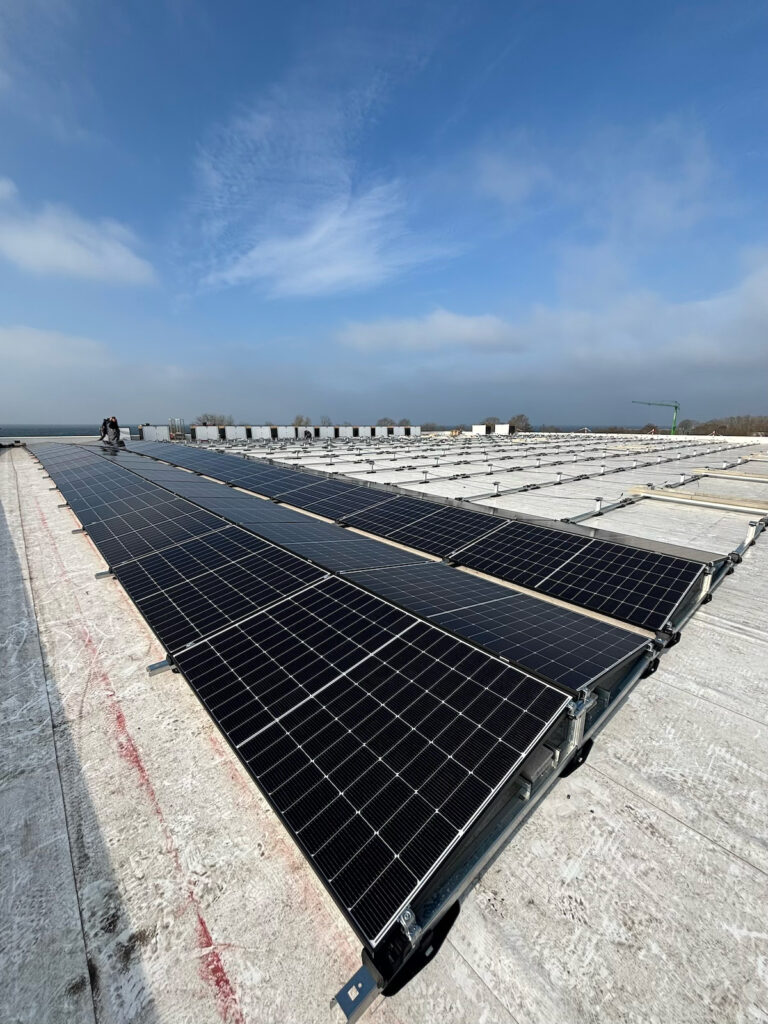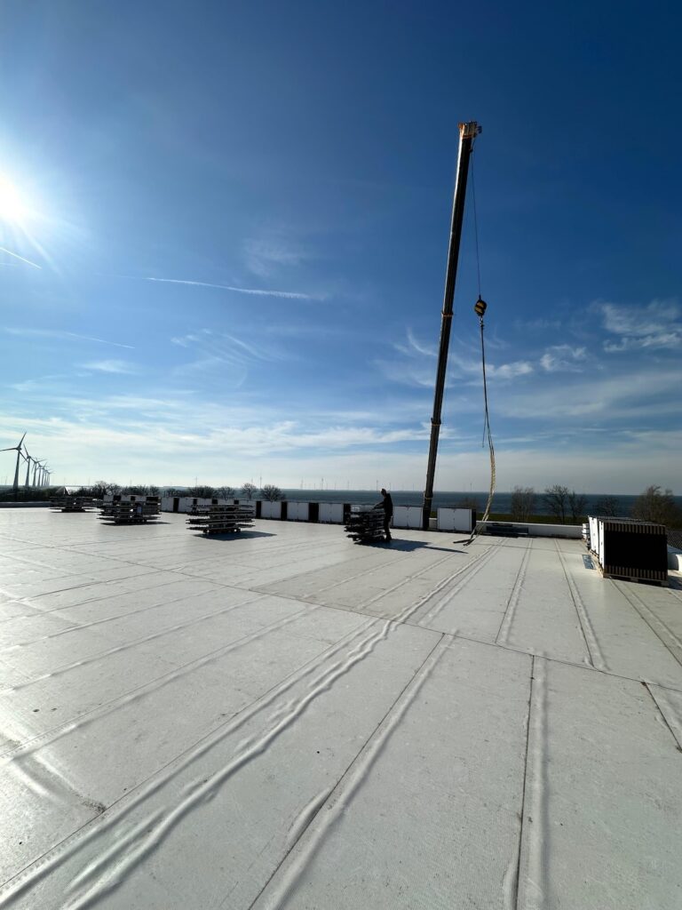 Rond eind april 2025 mochten we opnieuw aan de slag voor onze vaste klant Urk Export. Na een eerdere succesvolle installatie van zonnepanelen op een van hun daken, kregen we opnieuw het vertrouwen om dit nieuwe project te realiseren.